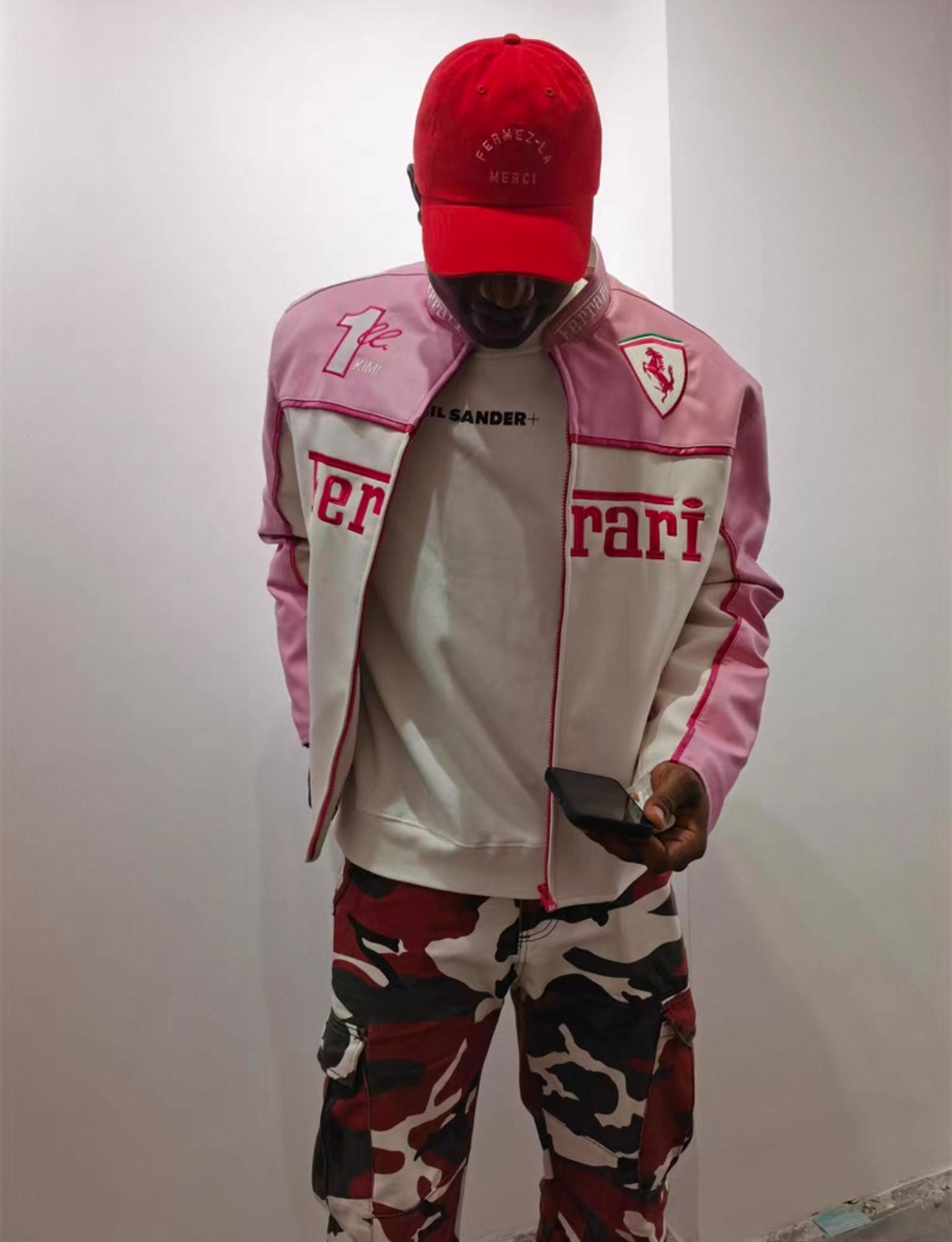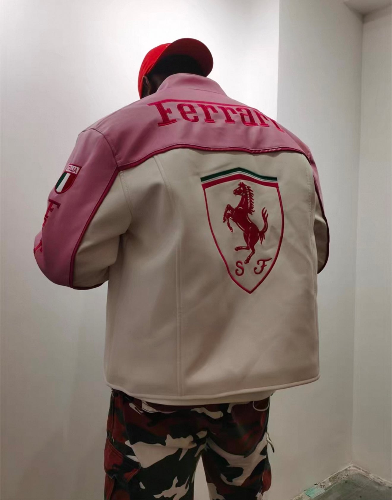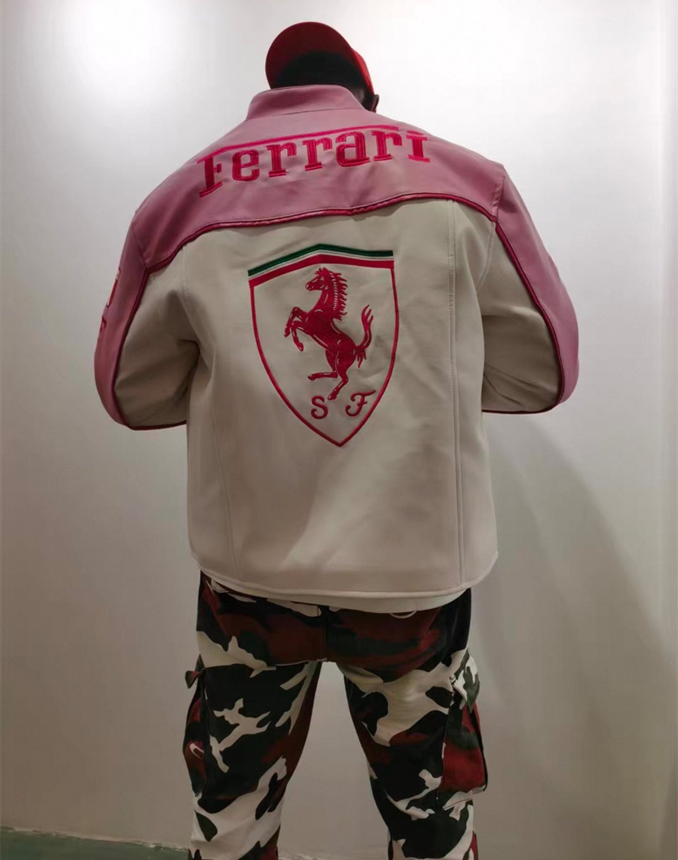 Ferrari Pink & White Leather Jacket – Kimi #1 Edition Racing Style