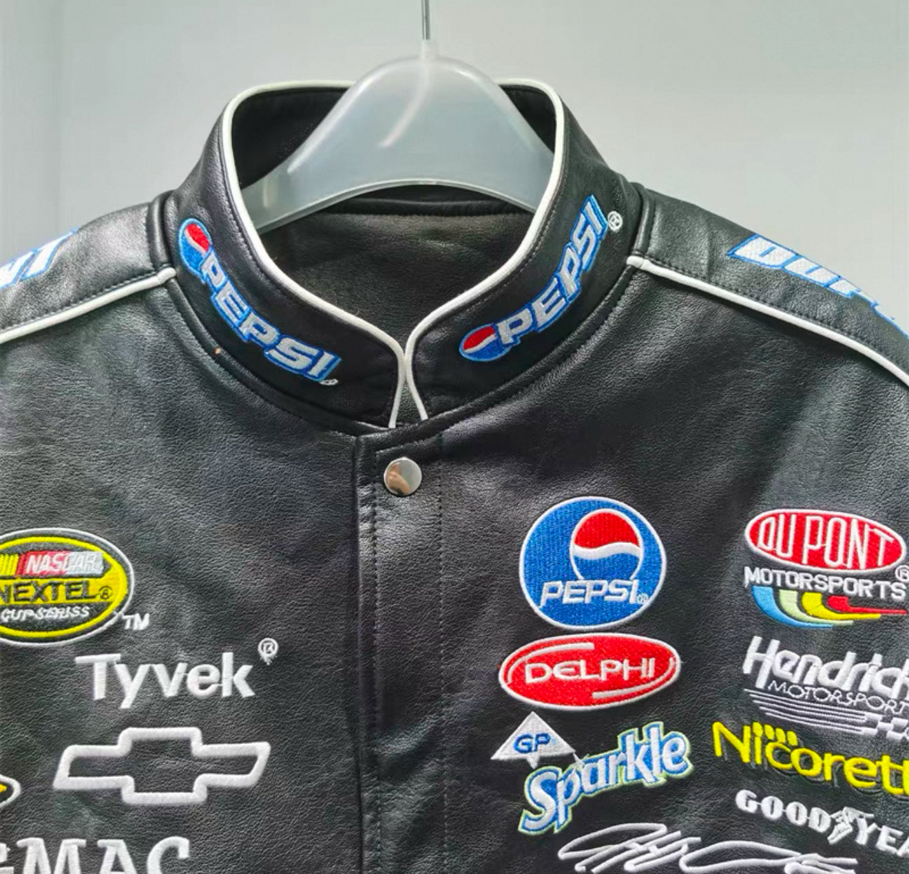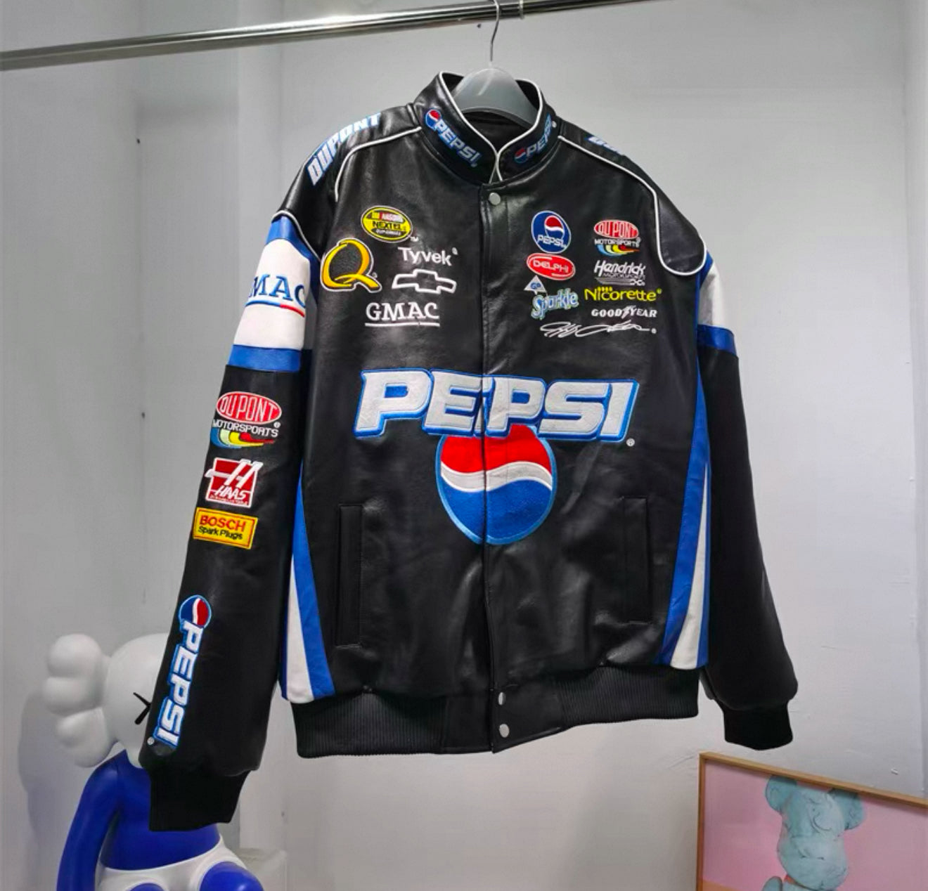 Pepsi Racing Leather Jacket – Black & Blue NASCAR Style